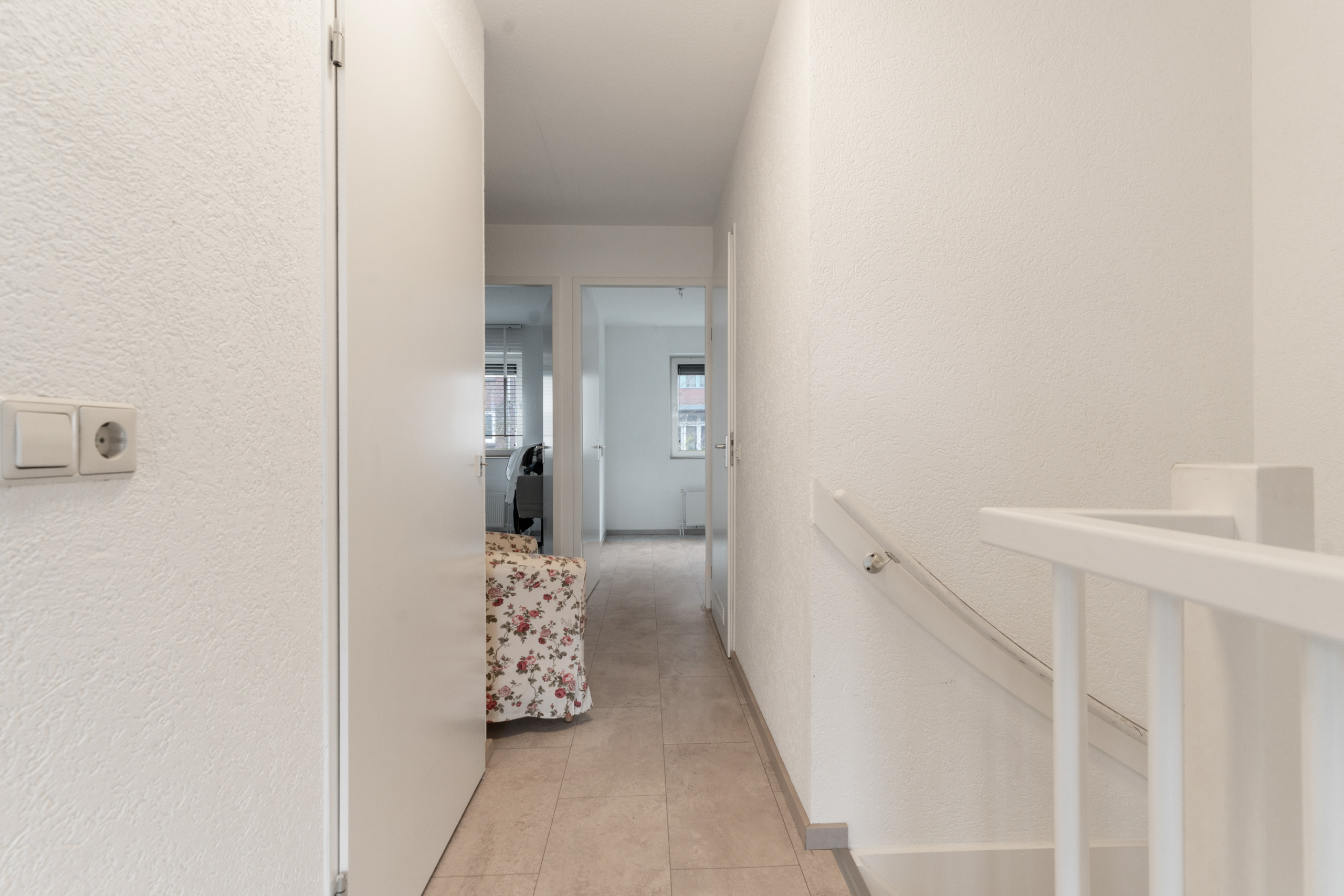 – Overloop: De overloop biedt toegang tot drie slaapkamers, de badkamer en een separate wasruimte.