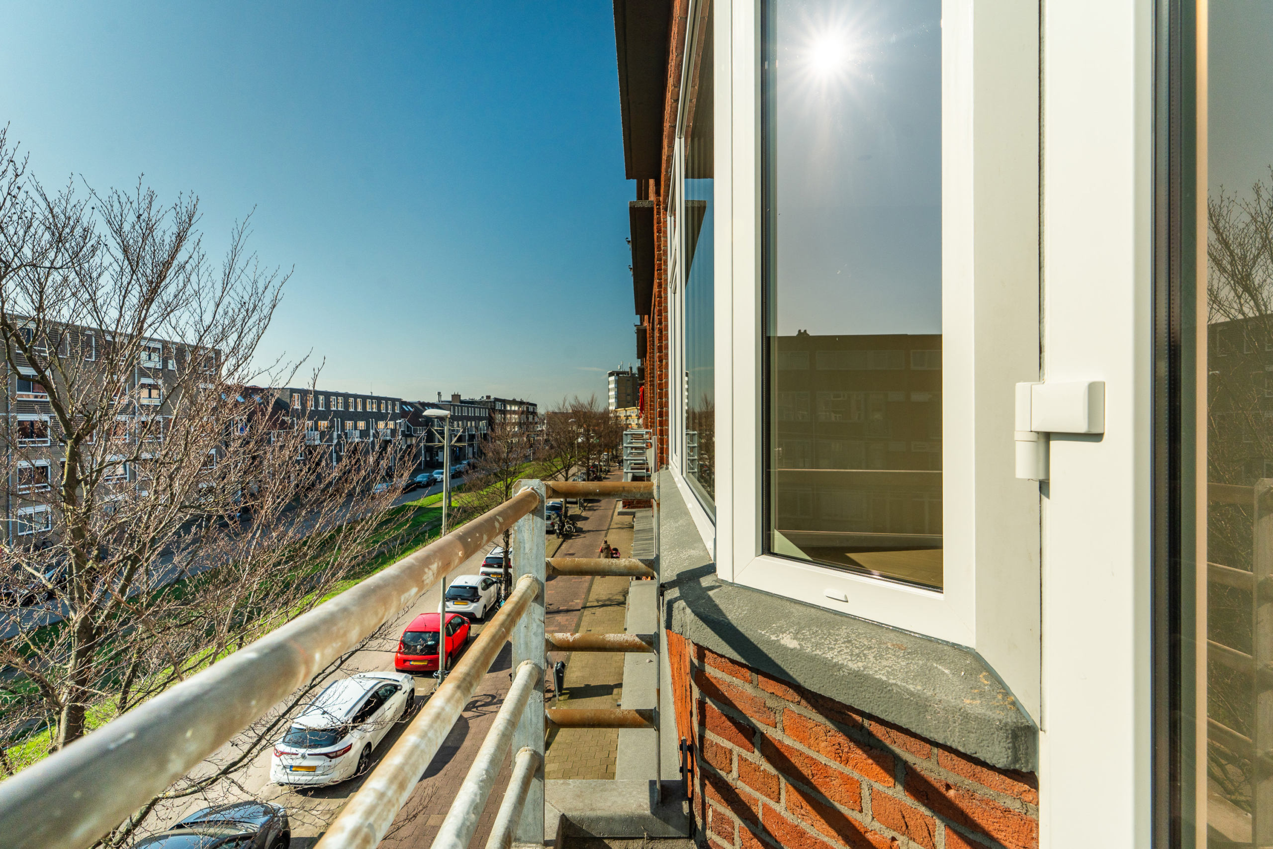 – Balkon: Het balkon is bereikbaar via de woonkamer en biedt een vrij uitzicht over de omliggende bebouwing en skyline. Een fijne plek om te genieten van de buitenlucht.