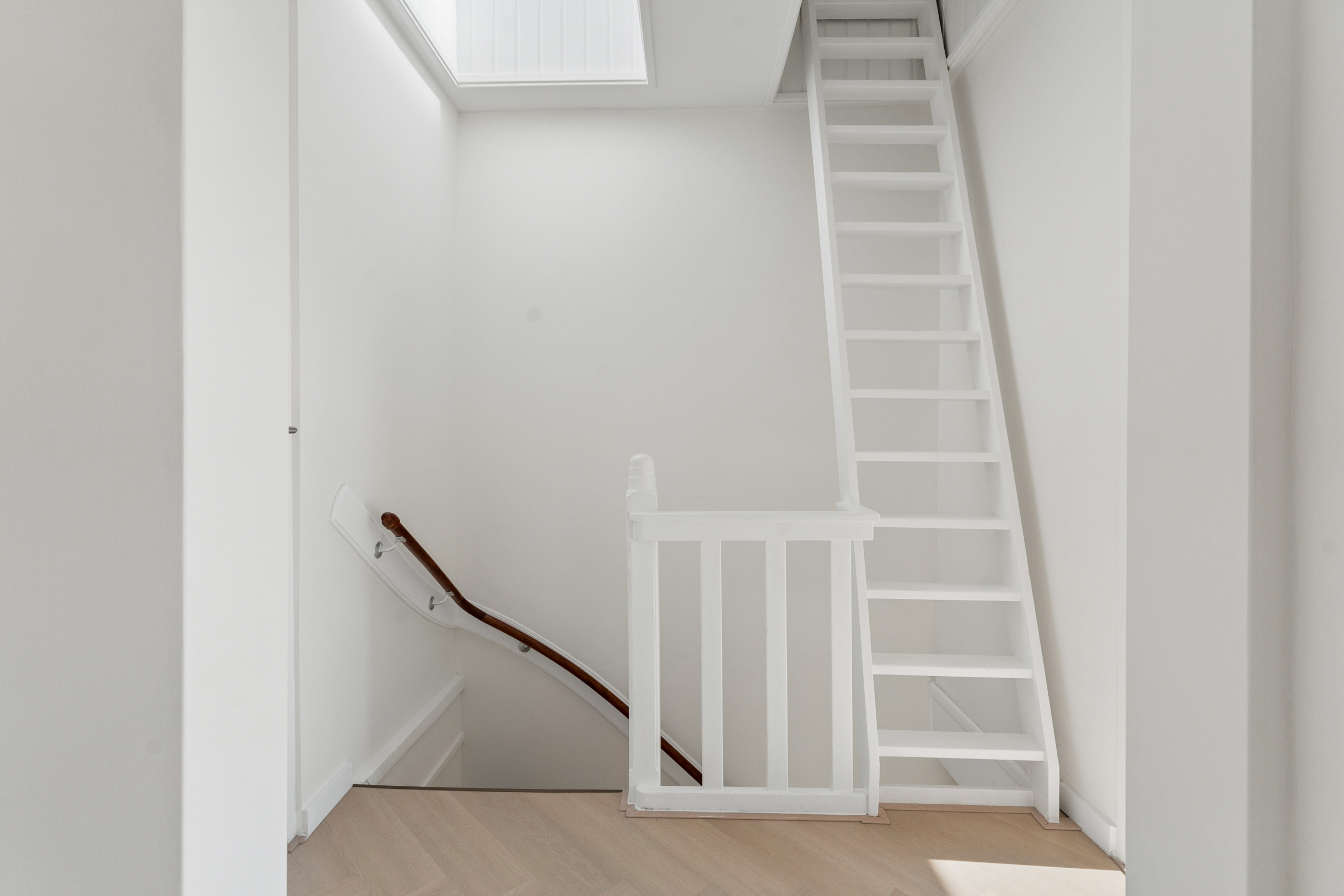 Via de trap bereikt u de tweede verdieping van de woning. Op deze verdieping bevinden zich de hal, twee slaapkamers, de badkamer en een praktische berging.