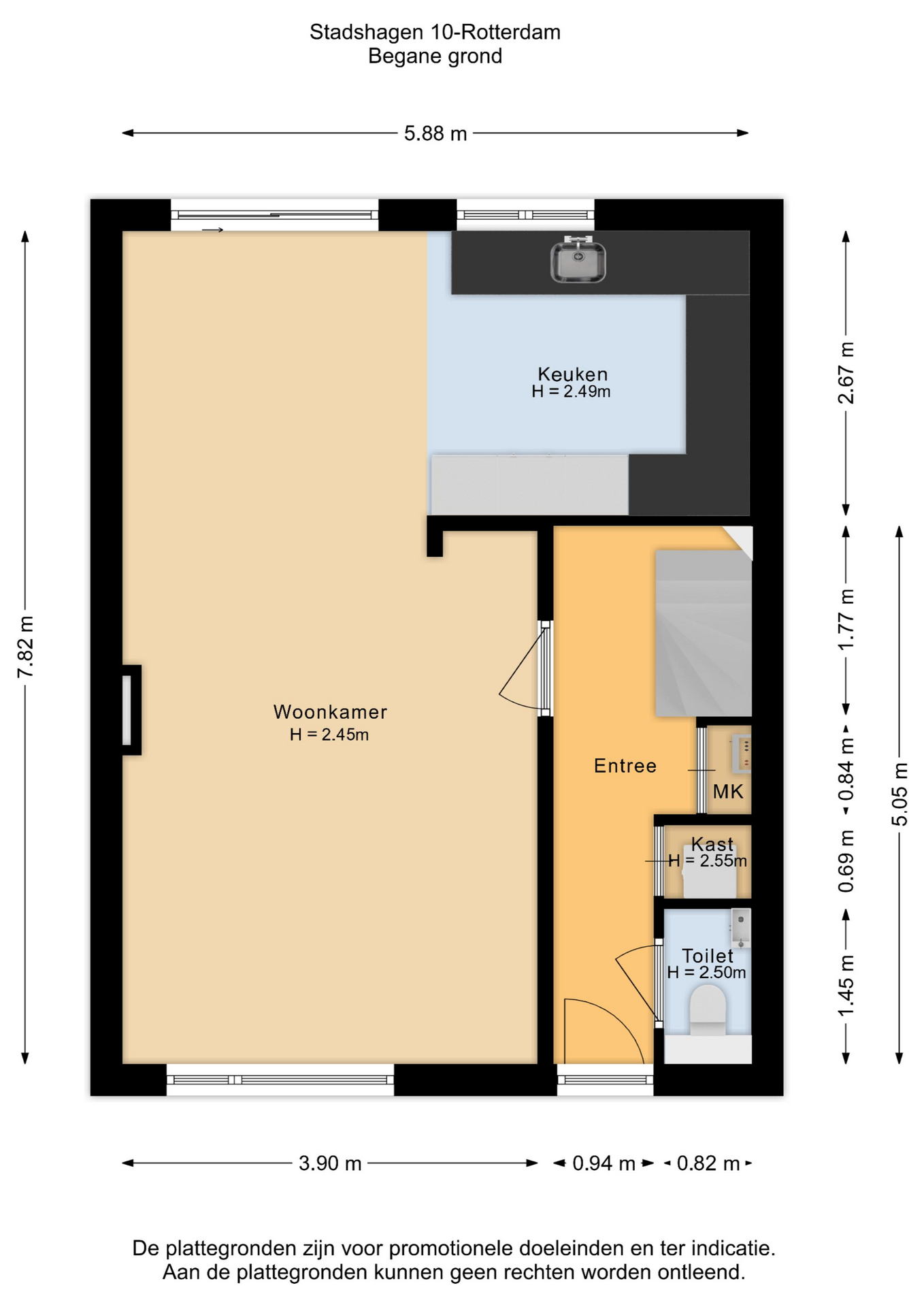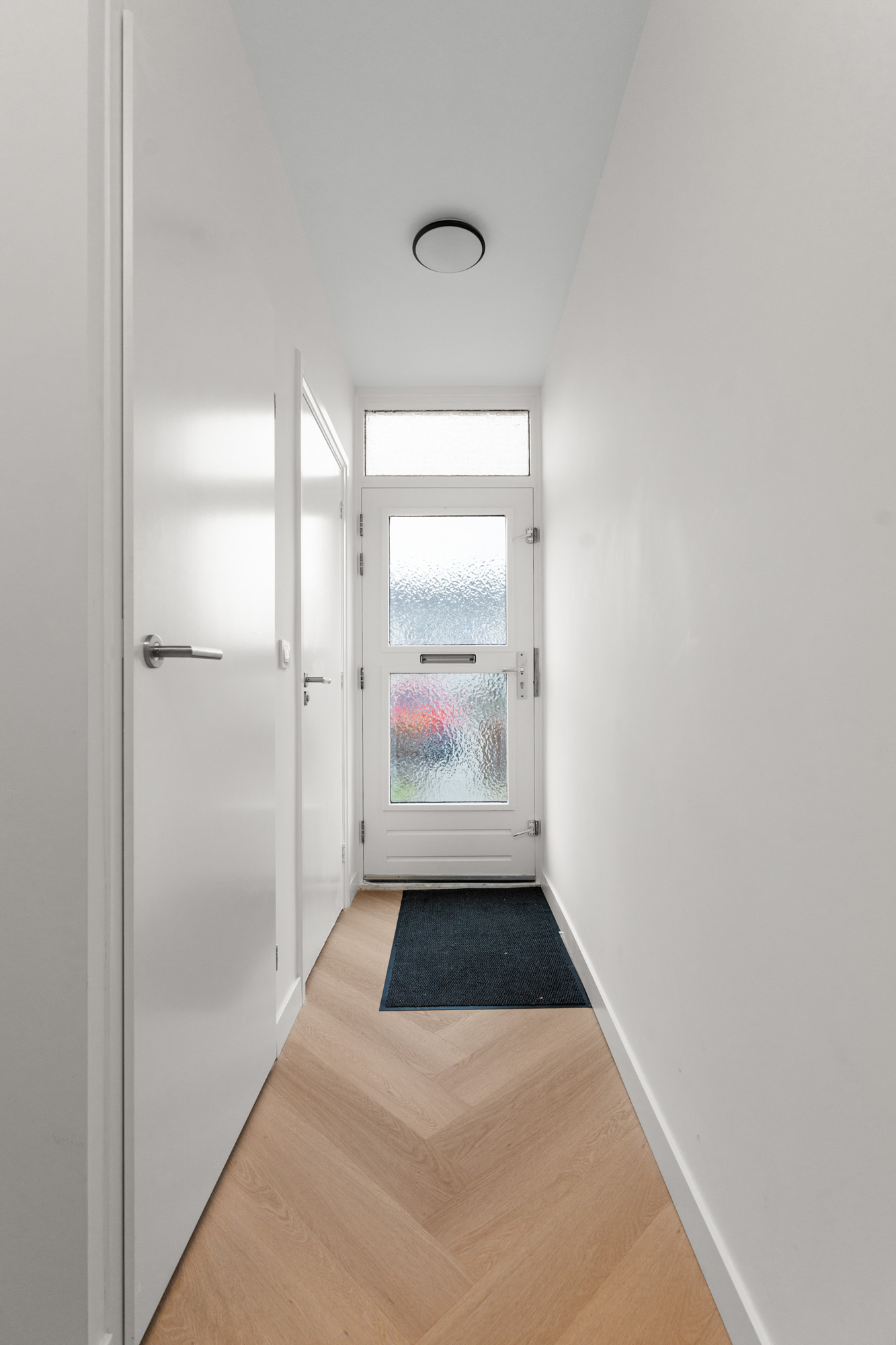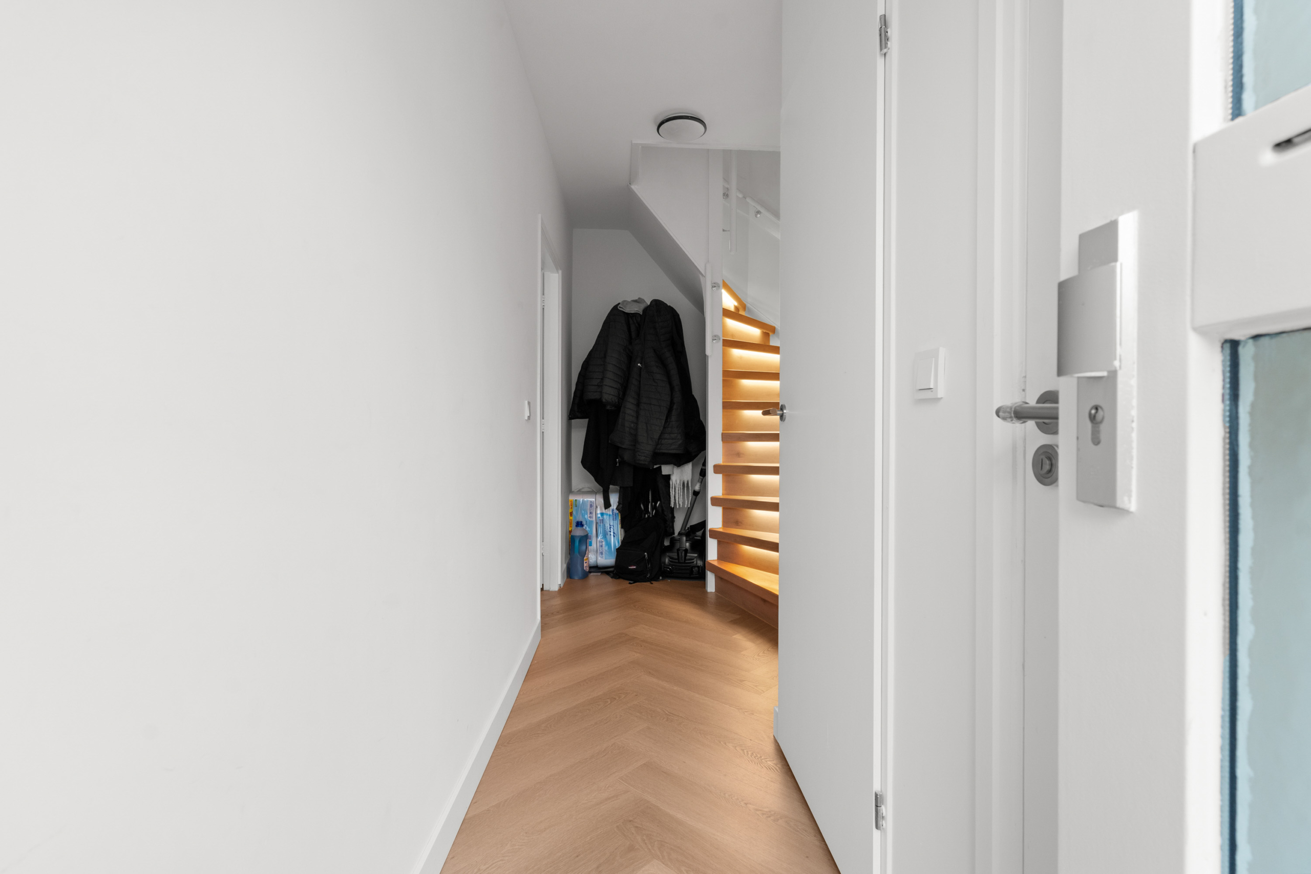 – Entree: via de voortuin bereikt u de entree van de woning. De hal biedt toegang tot het moderne toilet, de meterkast en de trapopgang naar de eerste verdieping.