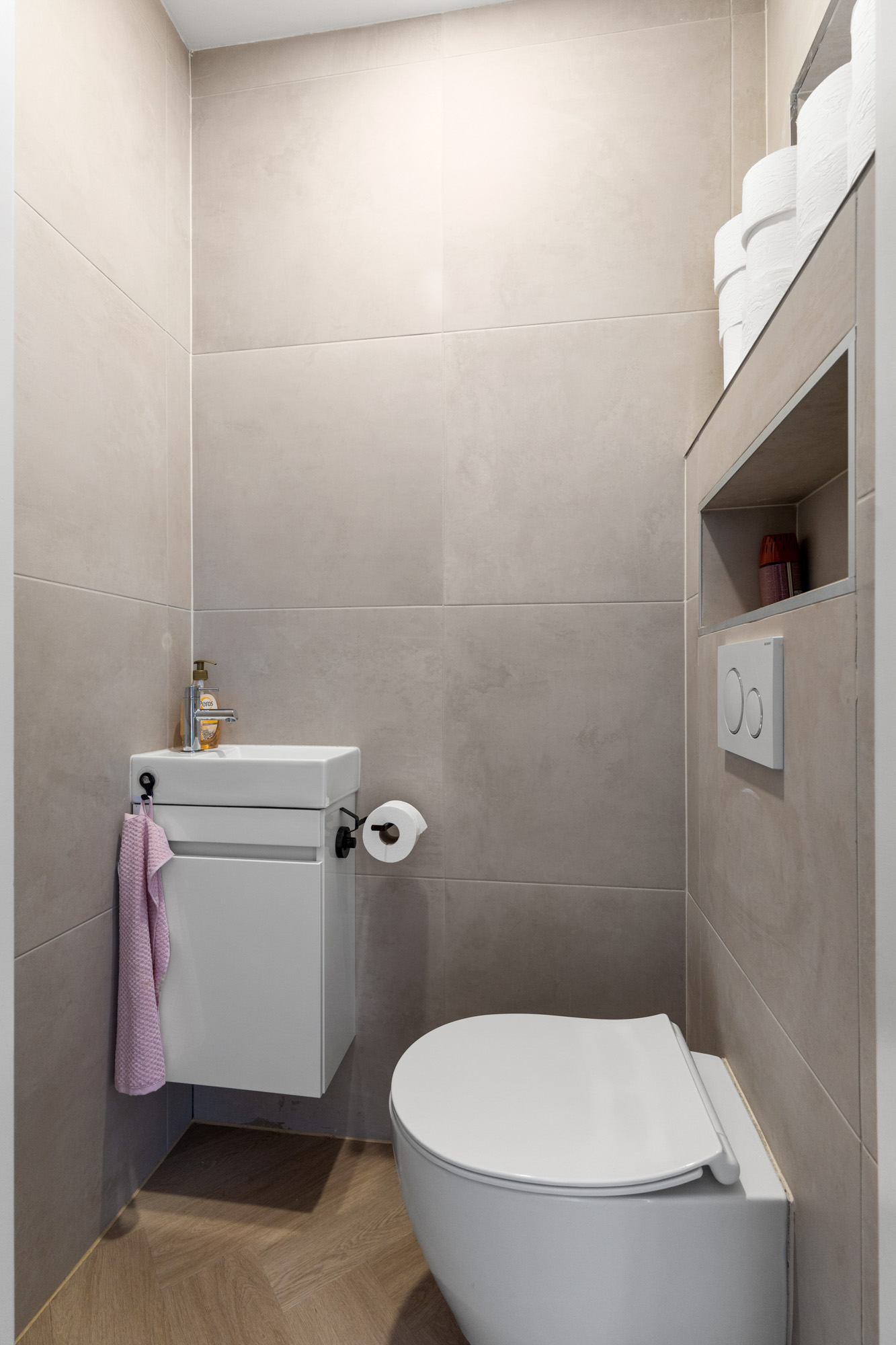 Het separate toilet bevindt zich op de begane grond en is modern afgewerkt.