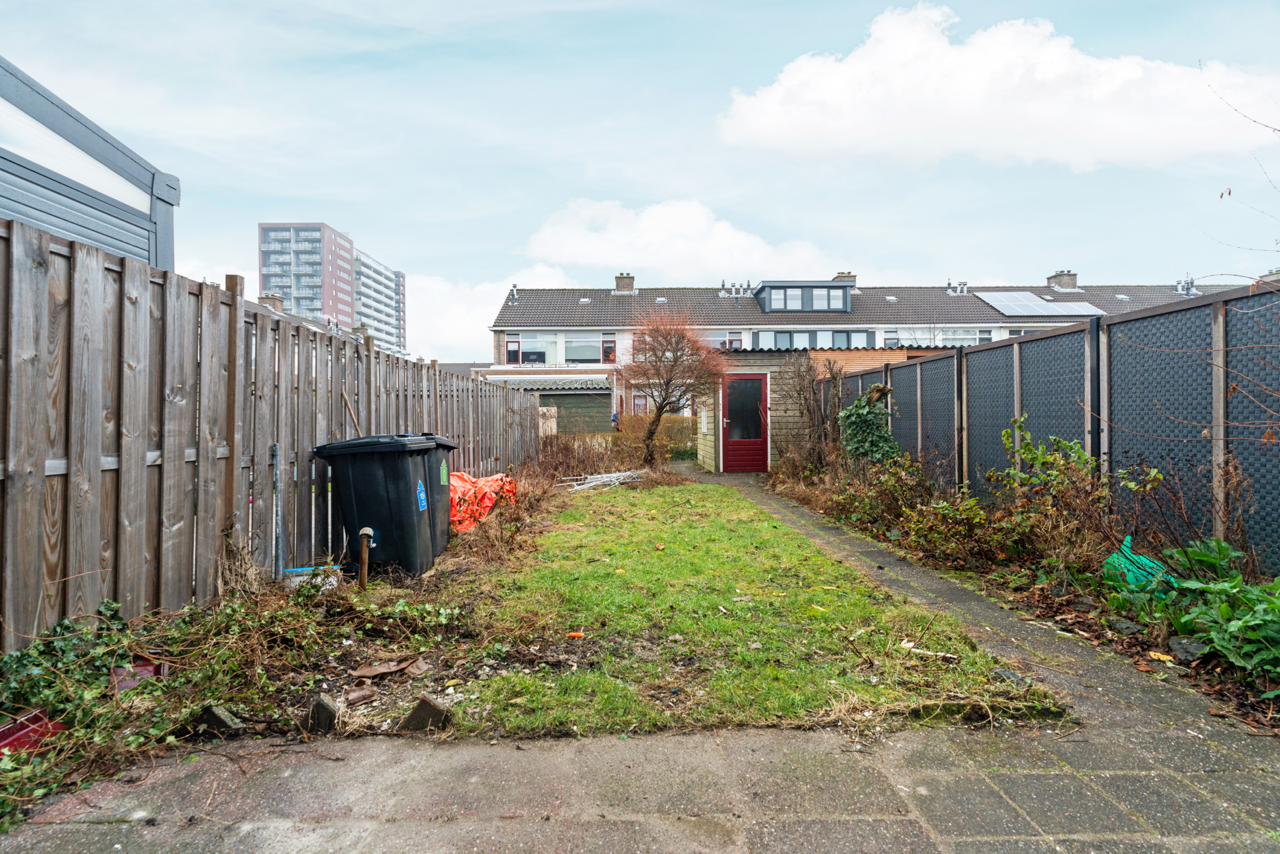 De achtertuin is circa 17 meter diep en gelegen op het westen. Hierdoor kunt u hier in de middag en avond van de zon genieten. De tuin beschikt over een terras, groenvoorziening en een vrijstaande houten berging. Dankzij de diepte is er voldoende ruimte voor zowel een zitgedeelte als speel- of tuinruimte.